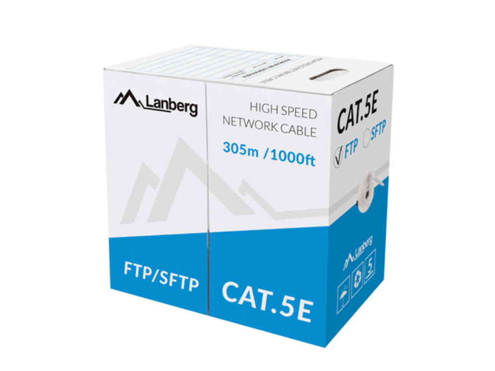 Lanberg LCF5-10CC-0305-S. Longitud de cable: 305 m, Cable estándar: Cat5e, Blindaje de cable: F/UTP (FTP)