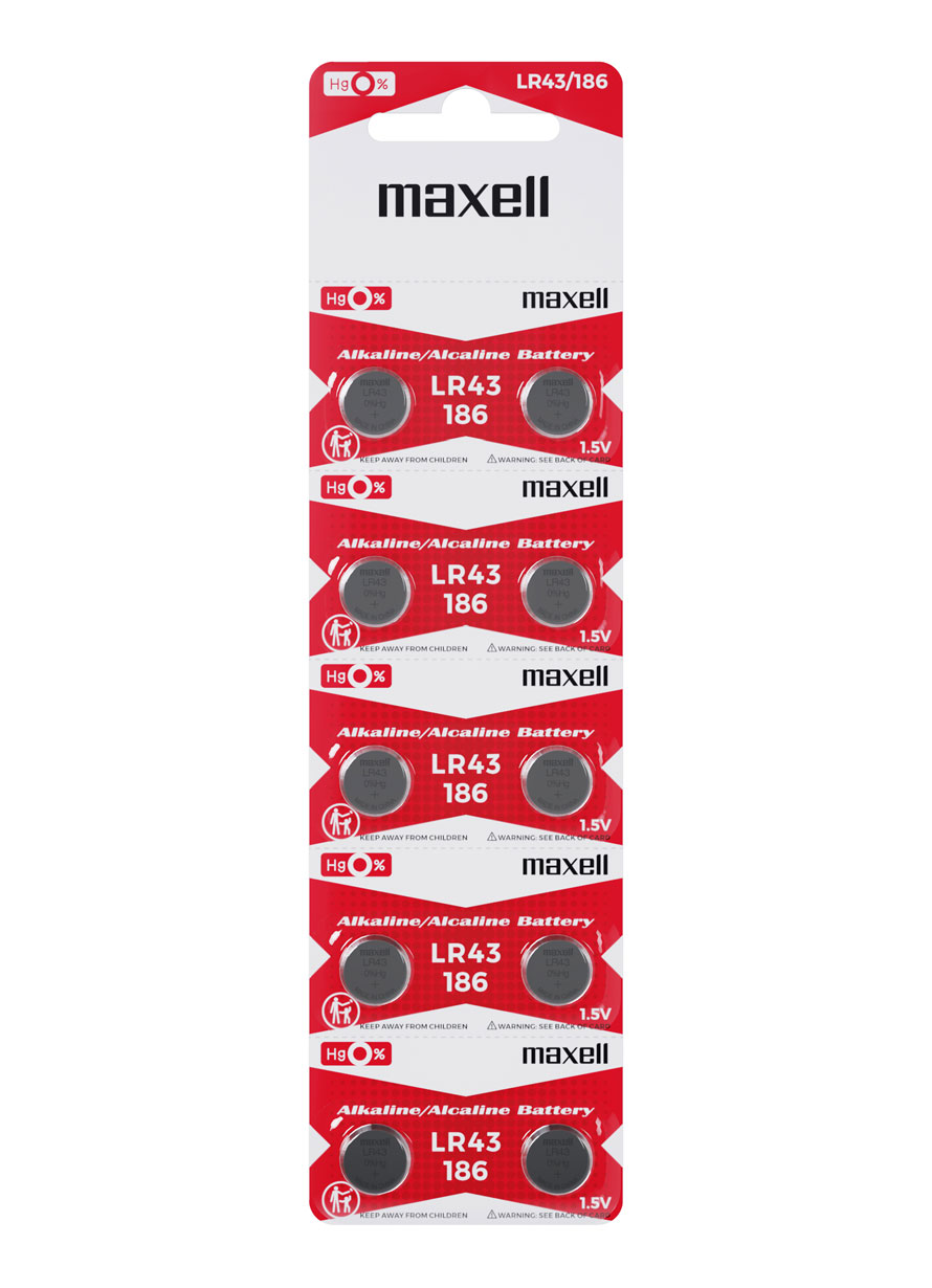 PILA MAXELL LR43 AG12 0% MERCURIO – BLISTER ROJO EU
